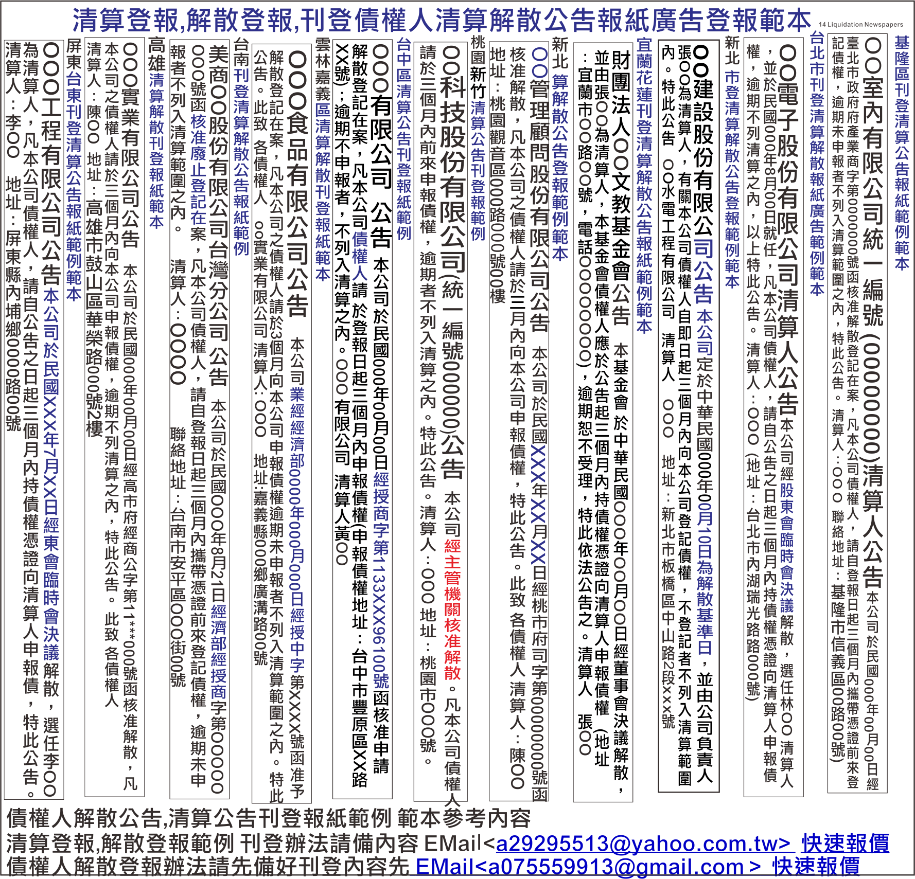 清算登報,解散登報公司公司結束登報公司債權人合併解散清算公告登報,刊登報紙公告範例範本參考內容
