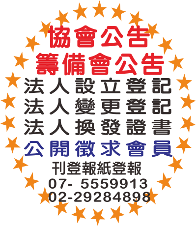 刊,登報紙,法人設立登記,台灣,台北地方法院登記處設立登記,財團法人設立登記,社團法人設立登記,法人登記,法人登記程序,內政部社團法人登記,法人登記申請辦理公告刊登報紙