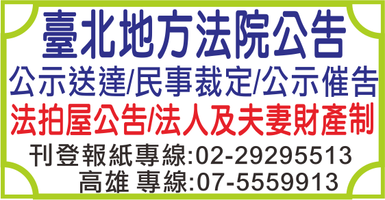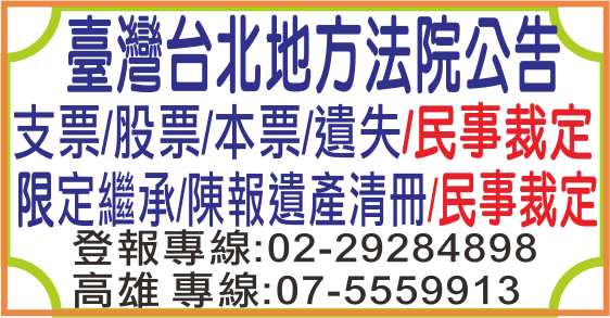 法院公示催告登報電話:(02)29295513     傳真:(02)29290261