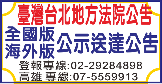 高雄法院公示催告登報電話(07)5559913  公告刊登電話:(02)292095513