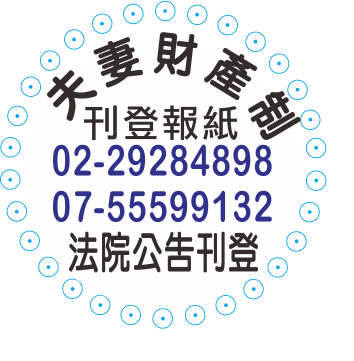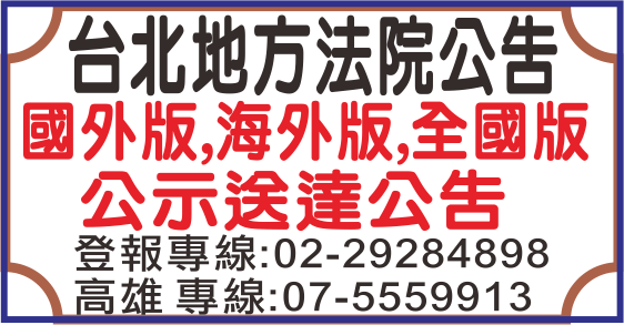 刊登法院公示催告電話:(02)29295513     傳真專線:(02)29290261