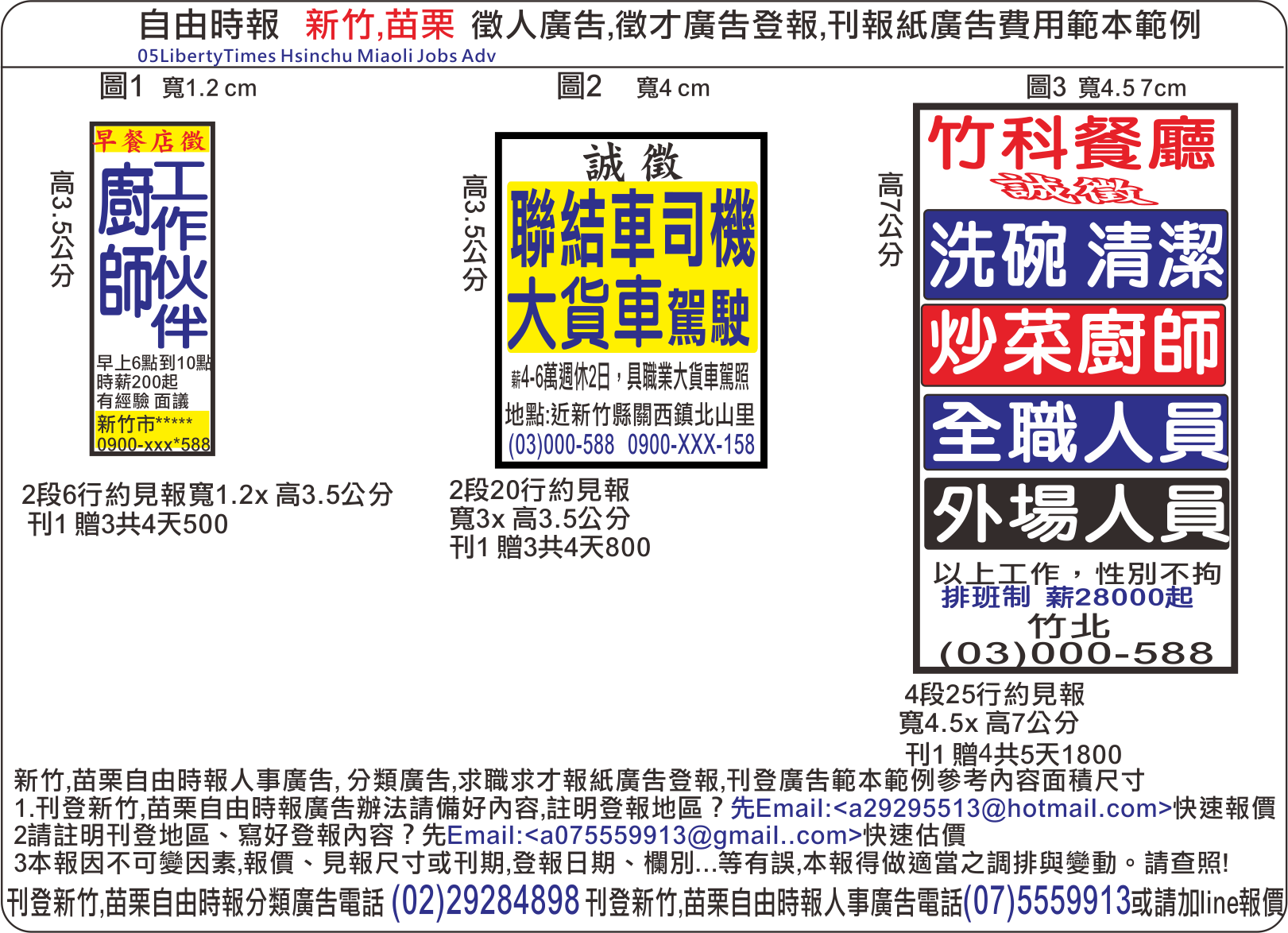 新竹苗栗登報-自由時報求職廣告刊登費用